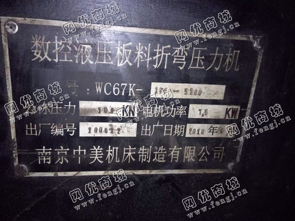 出售1台二手WC67K-100-3200液压板料折弯压力机,南京中美机床制造有限公司2010年产,8成新,售价2.2万/台,使用过程中无改装,无大修,存放于江苏苏州仓库中,在位停用,欢迎现场验货,可试机,有意电联!