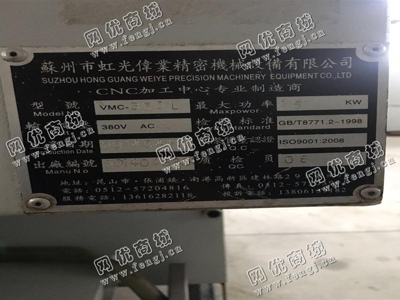 出售1台二手2014年虹光VMC-850加工设备,苏州市虹光伟业精密机械设备有限公司2014年产,8成新,售价15万/台,使用过程中无改装,无大修,存放于河北廊坊仓库中,在位停用,欢迎现场验货,可试机,有意电联!