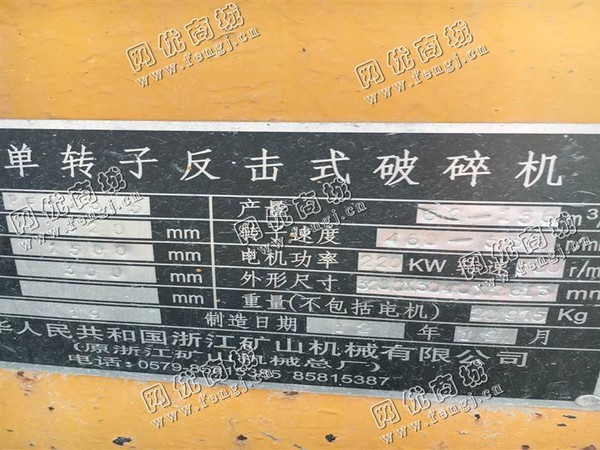 出售一台二手1315反击式破碎机,2012年浙江矿山机械有限公司生产,价格10万,使用过程中无改装,无大修,8成新,目前位于甘肃兰州,露天存放,可以现场验货,有意者电话联系。