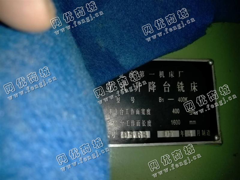 出售1台二手2005年北京一机B1-400K立式升降台铣床,8成新,售价6.3万/台,使用过程中无改装,无大修,存放于山东烟台仓库中,在位停用,欢迎现场验货,可试机,有意电联!