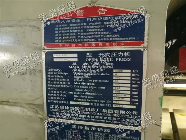 二手设备中介 >> 机床 >> 旧液压机 >> 出售1台二手2013年JH21-160型开式压力机
