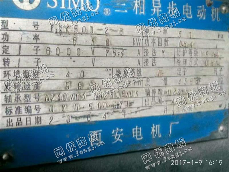 30000元(单价)处理YKK500-2-6/630KW/6000V电动机,机器为西安电机厂生产。电动机是8成新,正常使用的机器,使用过程中无改装,无大修。目前现位于河南仓库存放,有意者电话联系。