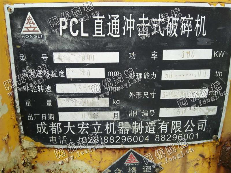 出售一台二手大宏立900冲击式破碎机,2006年成都大宏立机器制造有限公司生产,价格6万,使用过程中无改装,无大修,7成新,目前位于四川成都,露天存放,可以现场验货,有意者电话联系。