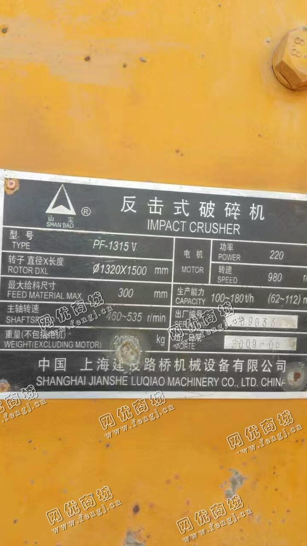 出售一台二手路桥1315反击式破碎机,2009年上海建设备路桥机械有限公司生产,价格12万,使用过程中无改装,无大修,7成新,目前位于陕西西安,仓库存放,可以现场验货,有意者电话联系。