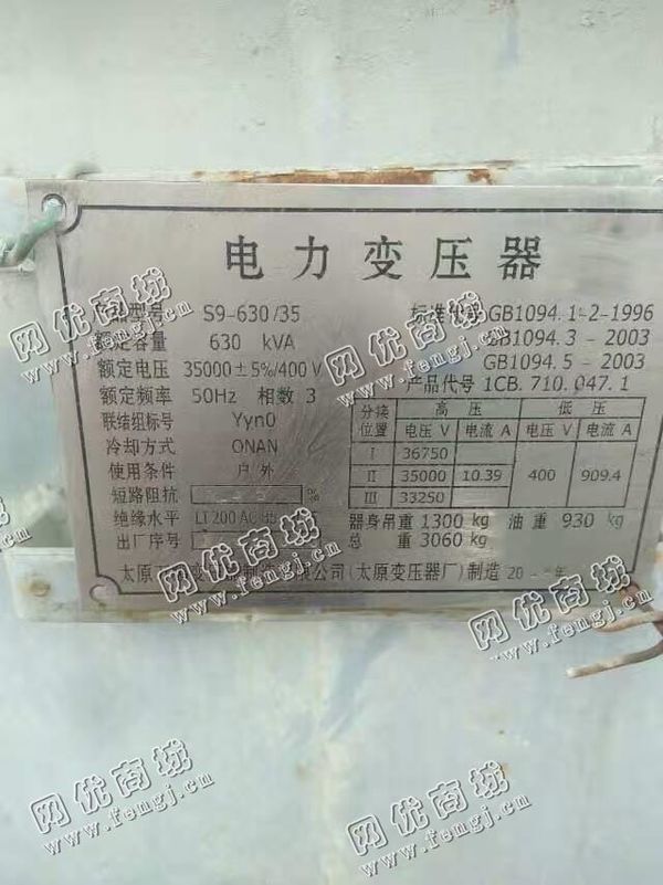 二手设备中介 >> 通用机械 >> 旧变压器 >> 出售S9-630/35/630KVA变压器1台