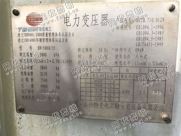 二手设备中介 >> 通用机械 >> 旧变压器 >> 出售S9-5000KVA/35变压器