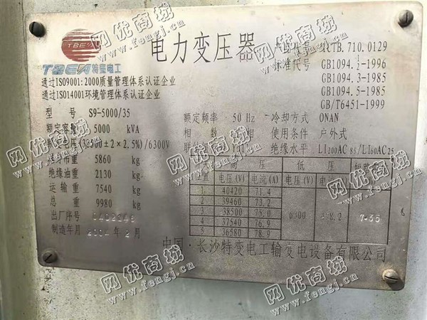 100000元(单价)处理S9-5000KVA/35长沙产变压器,机器为长沙产变压器厂生产,长沙产变压器厂变压器是8成新、正常使用的机器,使用过程中无改装、无大修。目前变压器位于河南仓库存放,可以现场验货,有意者电话联系。