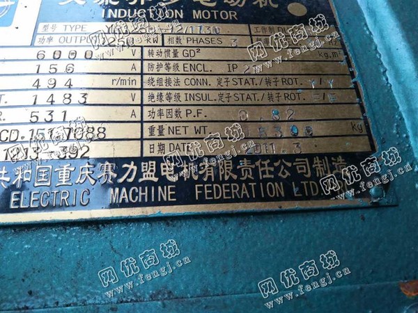 90000元(单价)出售YR1250-12/1250KW/6000V交流异步电动机一台,机器为重庆赛力盟电机责任有限公司生产,重庆赛力盟电机责任有限公司交流异步电动机是9成新、在位停用的机器,使用过程中无改装、无大修。目前交流异步电动机位于重庆仓库存放,可以现场验货,支持试车,有意者电话联系。