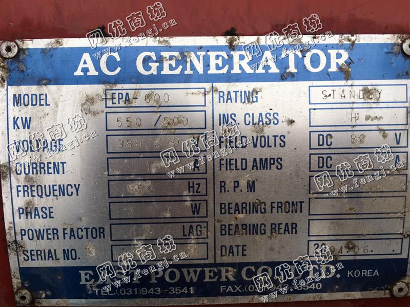 出售一台二手大宇500KW发电机