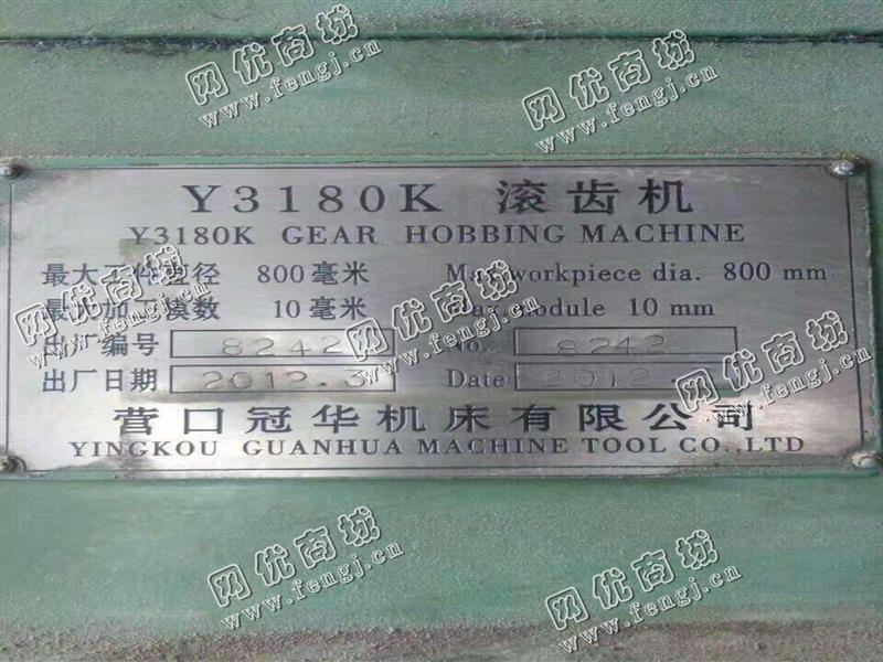 二手设备中介 >> 机床 >> 旧齿轮加工中心 >> 出售一台二手营口Y3180K滚齿机