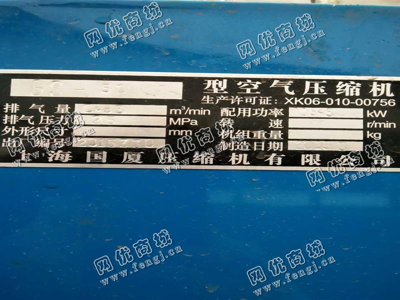 15000元(单价)出售一台二手上海GS-50型空气压缩机,机器为上海国厦压缩机有限公司生产,上海国厦压缩机有限公司空气压缩机是8成新、在位停用的机器,使用过程中无改装、无大修。目前空气压缩机位于山东仓库存放,可以现场验货,支持试车,有意者电话联系。