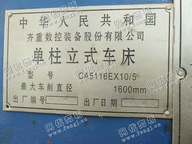 85000元(单价)出售一台二手齐重CA5116E*10/5单柱立式车床,机器为齐重数控装备股份有限公司生产,齐重数控装备股份有限公司单柱立式车床是8成新、在位停用的机器,使用过程中无改装、无大修。目前单柱立式车床位于浙江仓库存放,可以现场验货,支持试车,有意者电话联系。