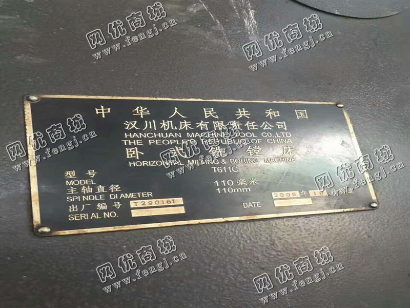 116000元(单价)出售一台汉川T611C卧式铣镗床,机器为汉川机床有限责任公司生产,汉川机床有限责任公司卧式铣镗床是8成新、在位停用的机器,使用过程中无改装、无大修。目前卧式铣镗床位于河北仓库存放,可以现场验货,支持试车,有意者电话联系。
