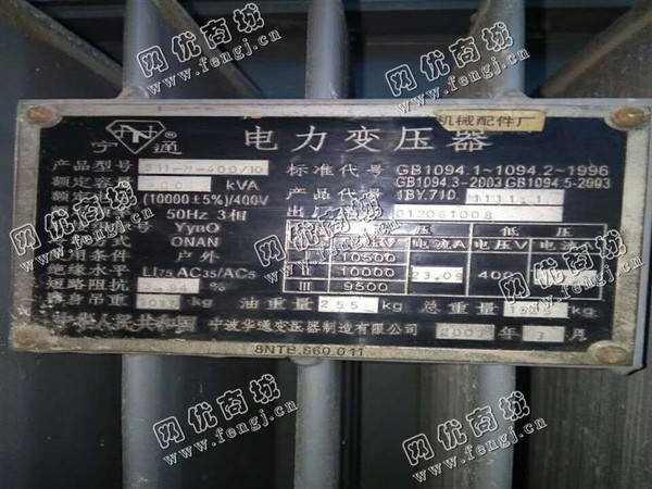 二手设备中介 >> 通用机械 >> 旧变压器 >> 出售一台S11-M-400/10变压器