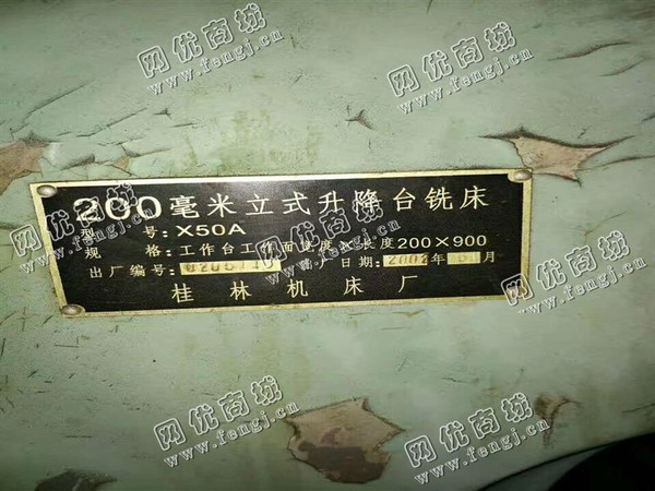 6000元(单价)出售一台X50A立式升降台铣床,机器为桂林机床厂生产,立式升降台铣床是5成新、在位停用的机器,使用过程中无改装、无大修。目前立式升降台铣床位于浙江仓库存放,可以现场验货,支持试车,有意者电话联系。