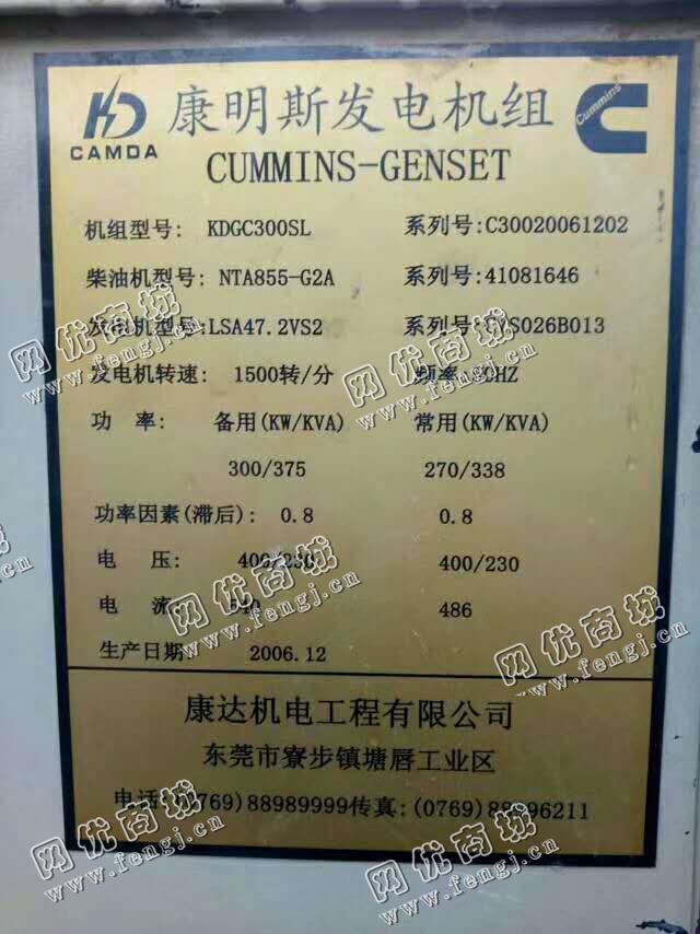 二手设备中介 >> 发电机 >> 出售一台康明斯250KW发电机组