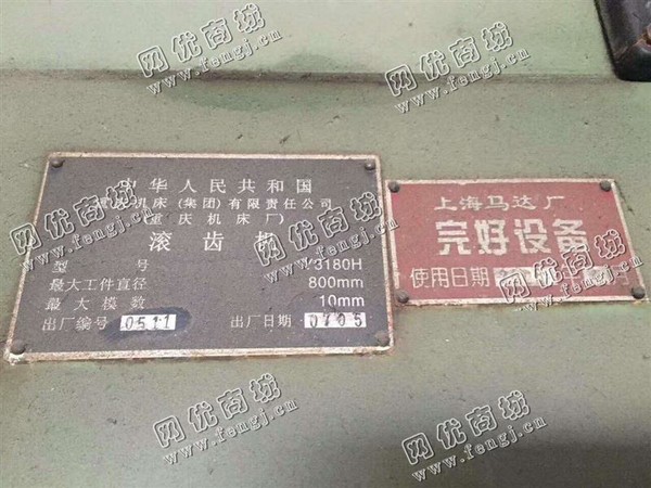 39000元(单价)出售一台重庆Y3180H滚齿机,机器为重庆机床有限责任公司生产,重庆机床有限责任公司滚齿机是8成新、在位停用的机器,使用过程中无改装、无大修。目前滚齿机位于浙江仓库存放,可以现场验货,支持试车,有意者电话联系。