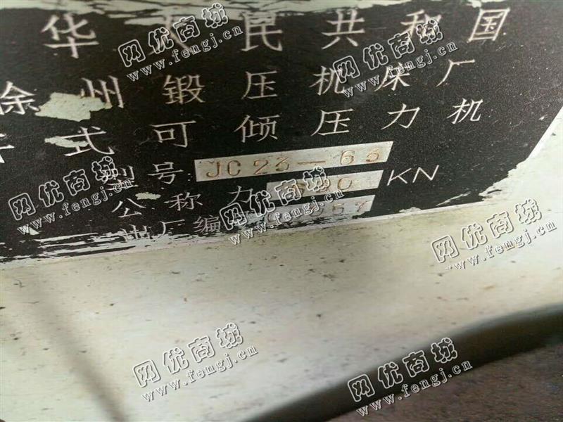 25000元(单价)出售一台JC23-63开式可倾压力机,机器为徐州锻压机床厂生产,开式可倾压力机是6成新、在位停用的机器,使用过程中无改装、无大修。目前开式可倾压力机位于河南仓库存放,可以现场验货,支持试车,有意者电话联系。