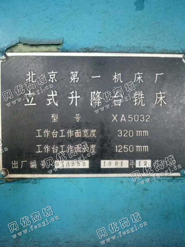 二手设备中介 >> 机床 >> 旧铣床 >> 出售一台XA5032立式升降台铣床
