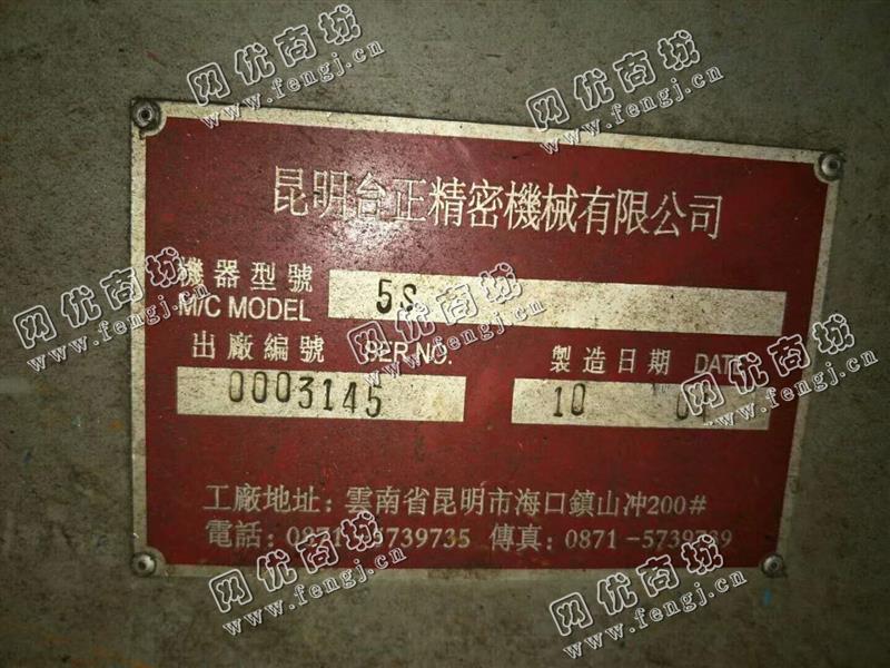 8000元(单价)出售一台5S炮塔铣,机器为昆明合正精密机械有限公司生产,合正精密机械炮塔铣是8成新、在位停用的机器,使用过程中无改装、无大修。目前炮塔铣位于浙江仓库存放,可以现场验货,支持试车,有意者电话联系。