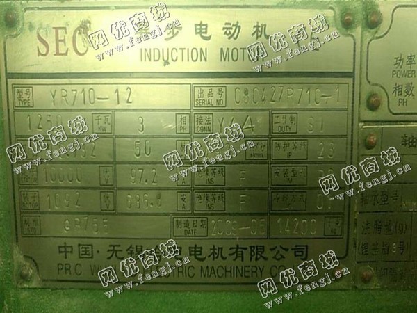 二手设备中介 >> 电动机 >> 出售一台电动机YR710-12/1250KW/10000V