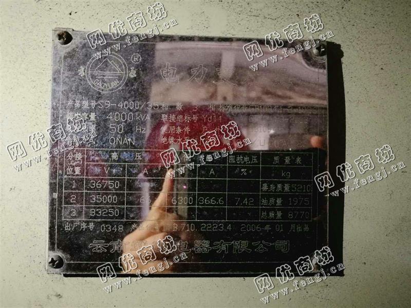 出售变压器4000KVA 1.品质量完好,精度好,7-8成新,机器能够正常运行,附件无损坏,安装能用,无需维修。 2.买方负责运费及拆装装车费,卖方需提供现场试车环境,卖方不开票,只可现金交易 。