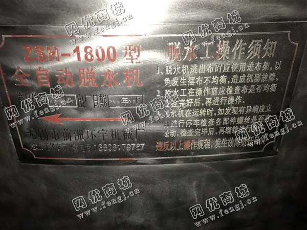22000元(单价)出售2台ZSH-1800型全自动脱水机,机器为无锡市前洲环宇机械厂生产,前洲环宇机械全自动脱水机是9成新、在位停用的机器,使用过程中无改装、无大修。目前全自动脱水机位于上海仓库存放,可以现场验货,支持试车,有意者电话联系。